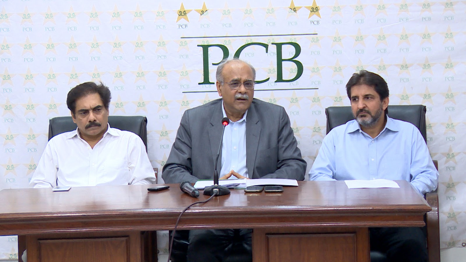 Najam Sethi briefing Media about PSL along with project Director PSL and Director Media PCB
