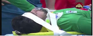 Paksitan Openning batsman received an unconciosness and injury while collide with WI batsman Walton in T20 when he was trying to field short played ball by Walton to Sohail Tanveer. The result oc collision he look like unconcious and umpires called the ambulance in the field and he sent to the near by madical center for Treatment along with the Team Physio Shaun Hase and Assistant coach Shahid Aslam. After the treatment and Scan of neck, he found OK and about 15 to 20 later back in the field. Ahmad shahzad welcomed by the fans of Cricekt at ground again with huge clapping.