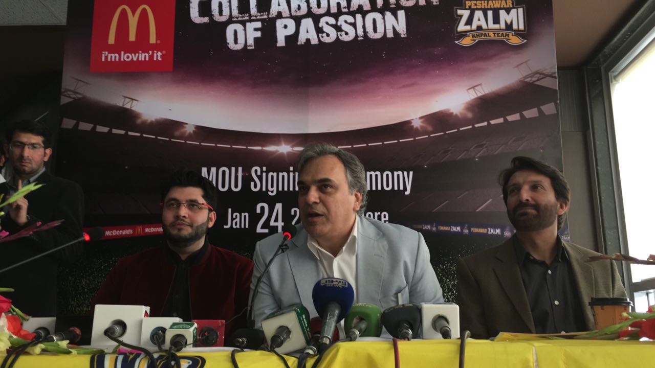 PSL Champions Peshawar formed their commercial bonding with McDonalds as partner for the upcoming edition of the #HBLPSL. Chairman Peshawar Zalmi Mr Javed Afridi and Chief Marketing Officer of Mcdonalds Pakistan Mr.Jamil Mughal sign MoU in Lahore at Mcdonalds branch at Gulberg, Lahore. Chairman PZ Javed Afridi state that”