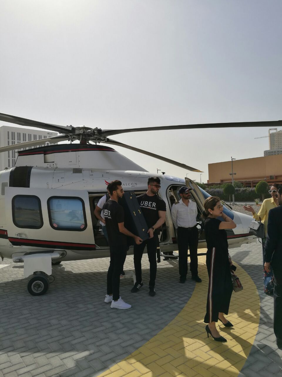 Pakistan Super league event of the year presenting by Pakistan Cricket board for third season will start on 22ndof Feburary in eye catching jaw breaking opening ceremony at Dubai Cricket stadium but before this the PSL Trophy 2018 unveiling ceremony also thrilled through the air ways of Helicopter. The trophy borough into the stadium in the helicopter and all the 6 captains enjoyed the ride and opening ceremony with enthusiastic cross words of defending champion Darren Sami, Imad Waseem, Shoeb Malik and star cricketer Shahid Afridi.The Trophy was picked up from Swarovski office in an Uber Chopper that took off from the Atlantis Helipad, the Chopper landed at the Me’aisem City Centre.