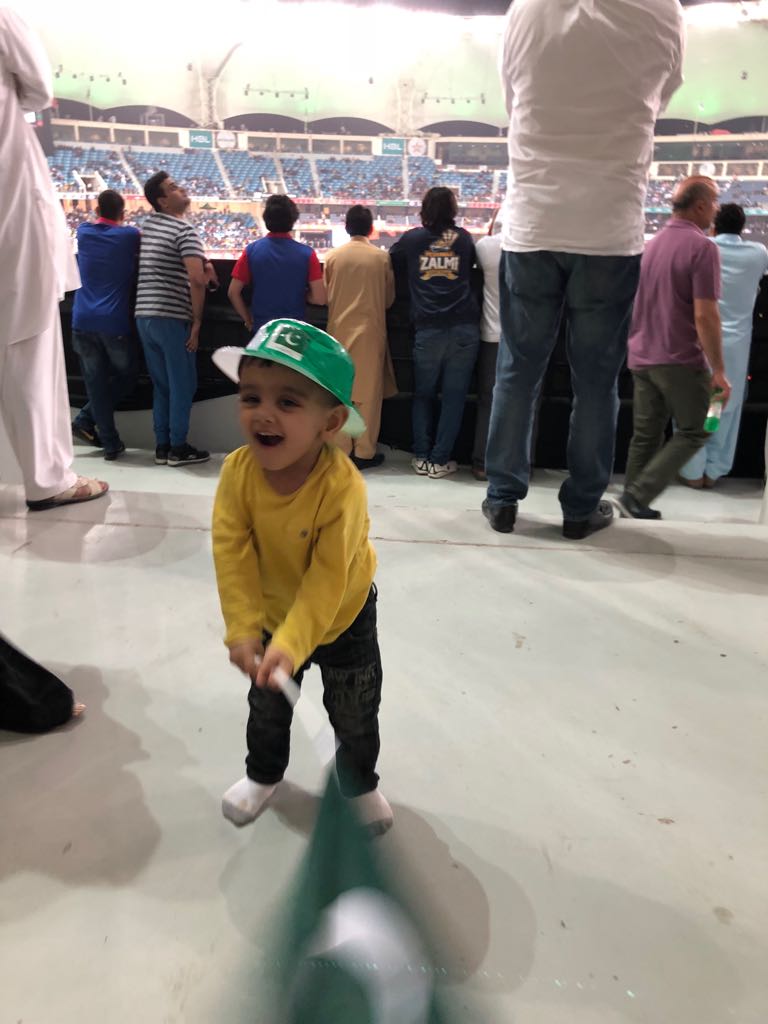 The Stadium was jam packed in the opening ceremony and a picture of kid enjoying left hand batting style in the stadium virile now.